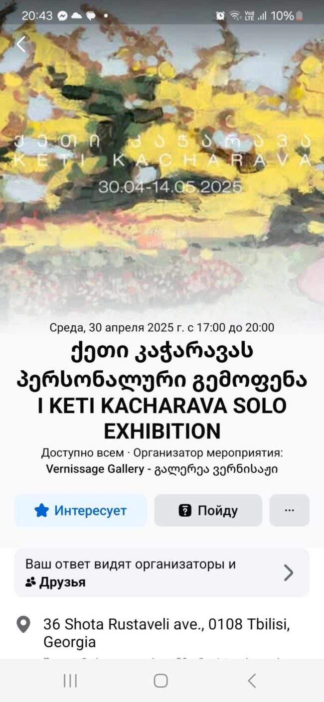 Georgian National Gallery and the Art Gallery Vanda Past EventsBy natiaberaia11/08/2025The Dimitri Shevardnadze Georgian National Gallery, in collaboration with the Art Gallery Vanda, will host…